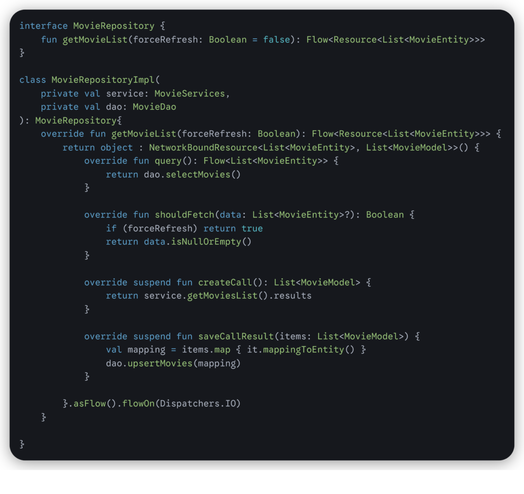 In this tutorial, I will focus specifically on native Android development using Kotlin. The sample application will be a Movie List app that uses data from the TMDB API. NetworkBoundResource can also be applied in other platforms such as iOS (Swift) or cross-platform frameworks like Flutter and React Native.