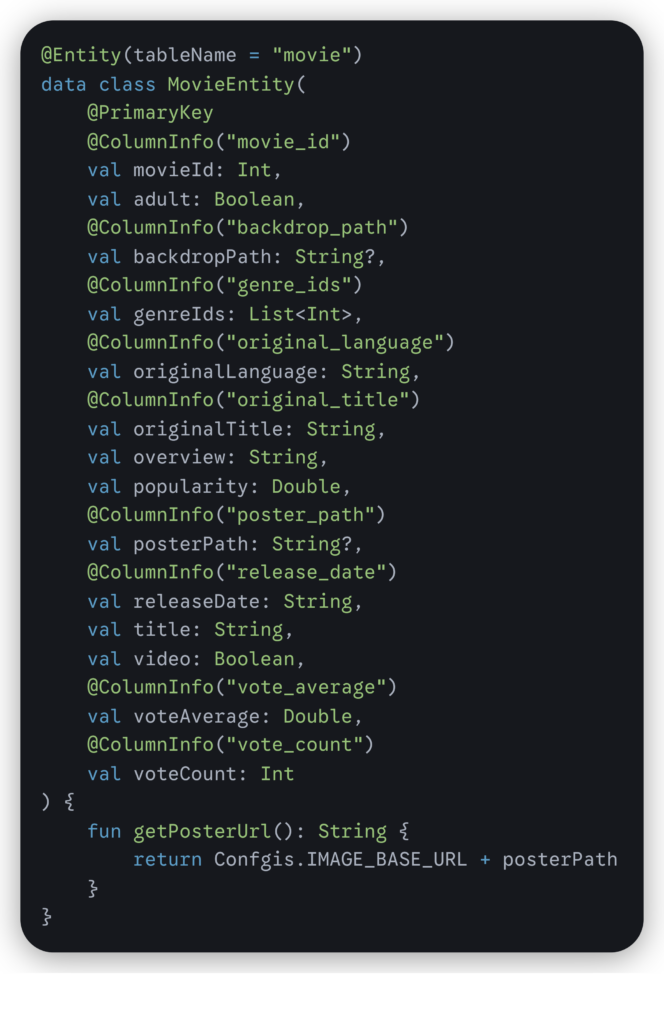 Creating the MovieEntity data class:
